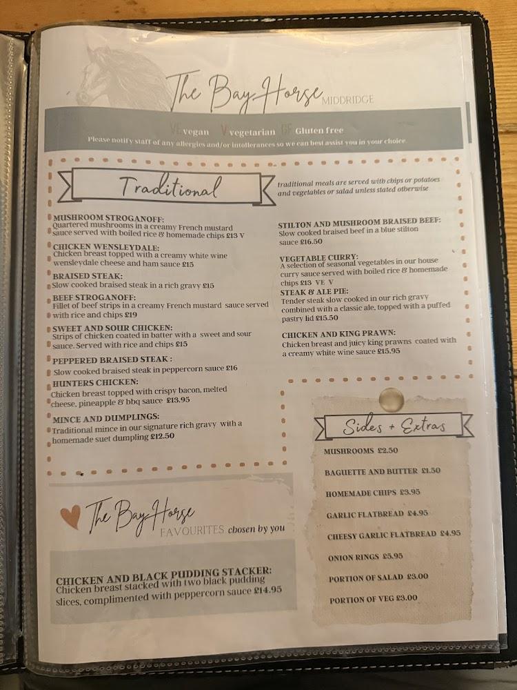 Located at 42 South Side in Middridge, The Bay Horse Middridge is more than just a place to grab a bite; it’s a staple of the local community. Nestled near the outskirts of Newton Aycliffe, this gastropub enjoys a picturesque setting that enhances its allure. The establishment boasts an inviting atmosphere, perfect for families, groups, or anyone seeking a delightful meal with a side of local character. Accessible and welcoming, the pub offers wheelchair access, ensuring that everyone can enjoy what it has to offer. The interior features a cozy fireplace, making it a perfect spot to unwind on chilly evenings.